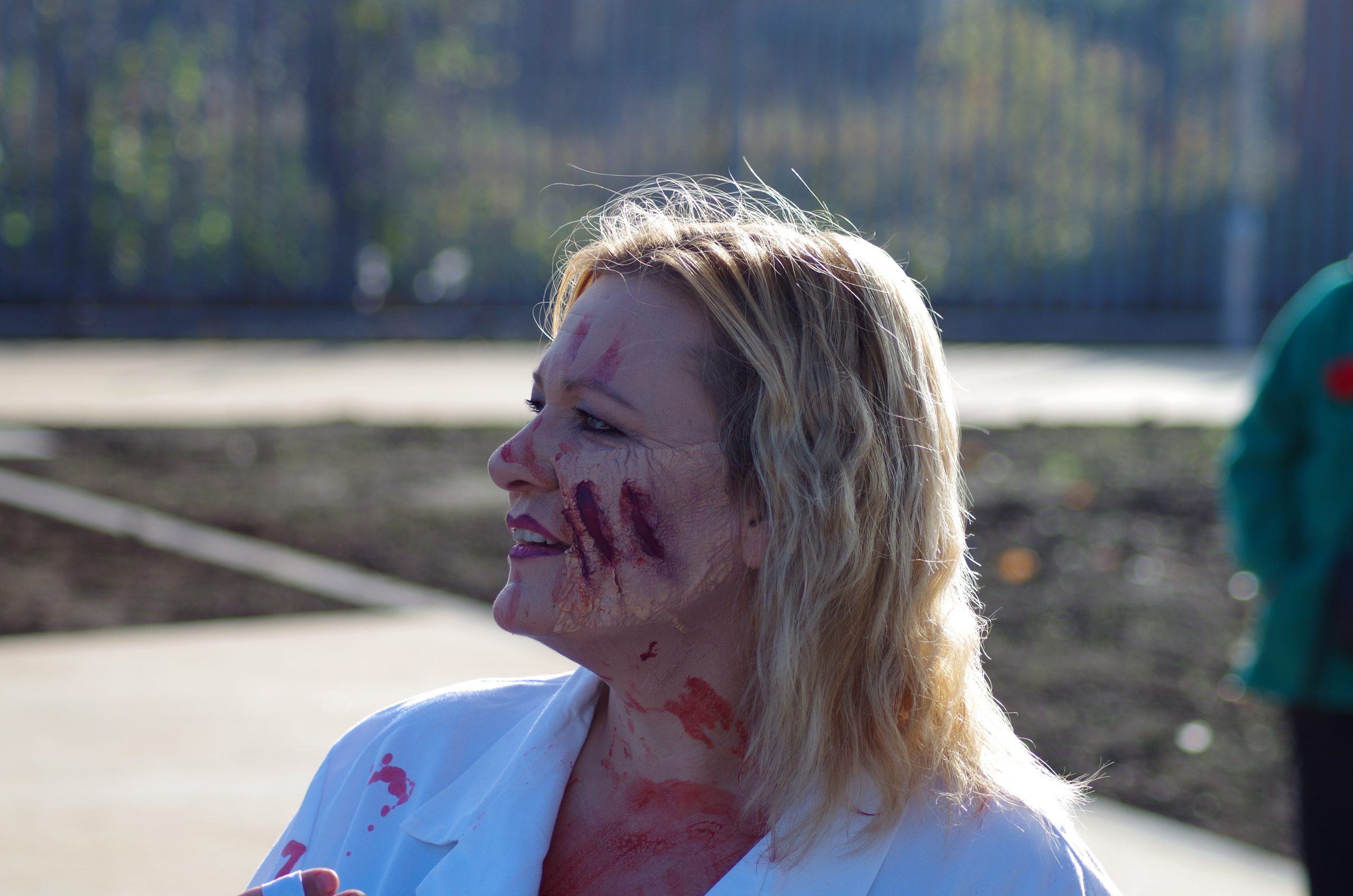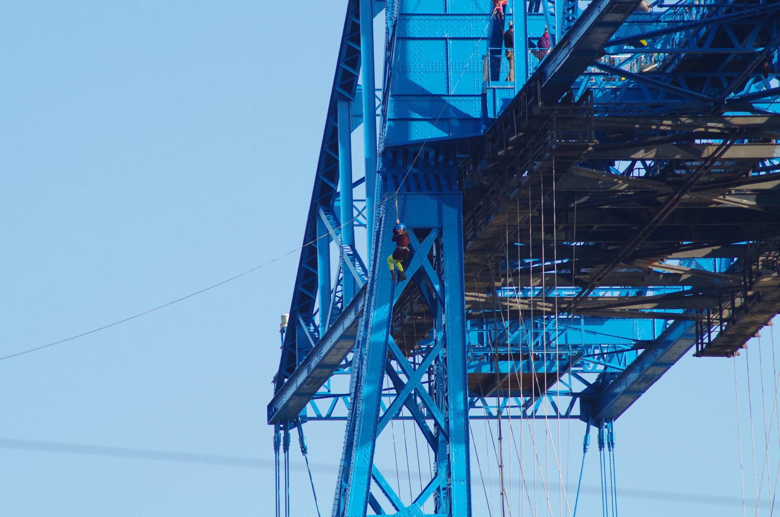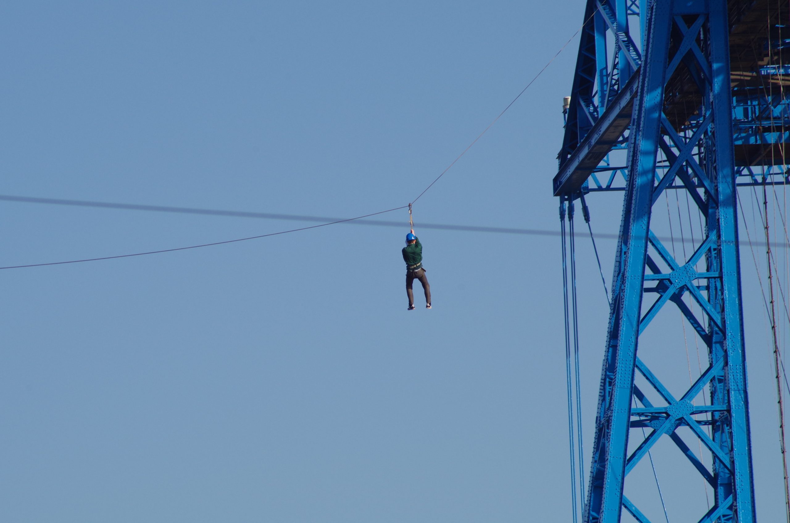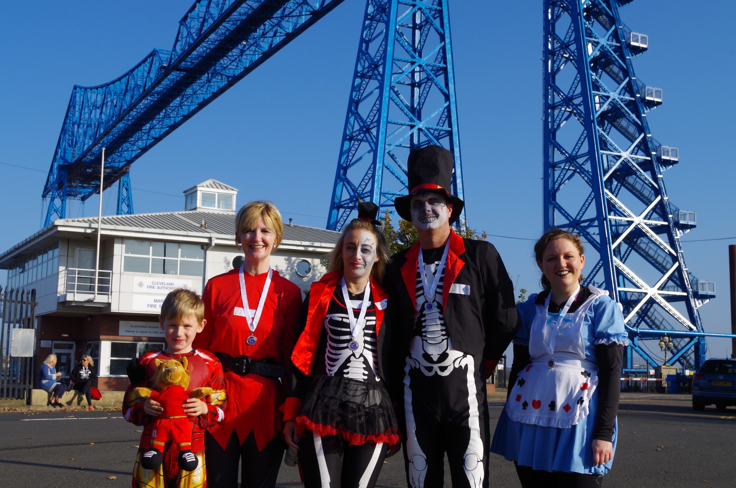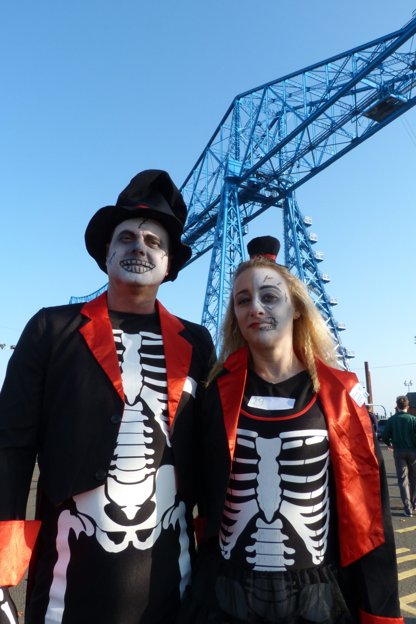 Dressed as zombies, witches, ghouls and ghosts, the Macks Solicitors team climbed the 210 steps to the top of the 104-year-old Transporter Bridge before zip sliding 600 feet across the River Tees to raise money for the Stroke Association.